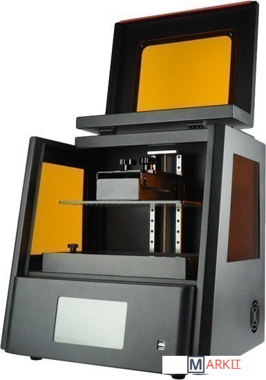 Принтер работает по технологии стереолитографической печати, которая на данный момент является самой точной и быстрой. Устройство способно производить слой толщиной вплоть до 35 микрон, что меньше печати слоя даже FDM-принтерами. Также пользователь может увеличить скорость печати за счет снижения его качества. В качестве расходного материала используется фотополимерная смола, которая затвердевает при светодиодном излучении. Устройство отличается простым и удобным управлением и способно создавать объекты высокой точности и прочности.