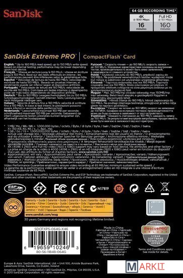 Markit » Карты памяти » Карта памяти SanDisk Extreme Pro CompactFlash 64GB (SDCFXPS-064G-X46)