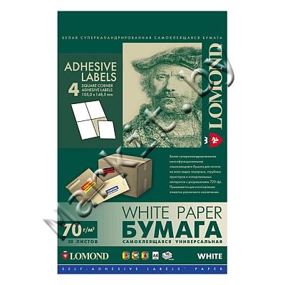 Самоклеящаяся бумага LOMOND (2100025) A4, 4 дел (105x148,5мм), 50 листов Код: 1034