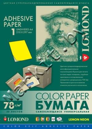 Самоклеящаяся бумага LOMOND (2040005) A4, 1 дел, желтая, 50 листов Код: 5442